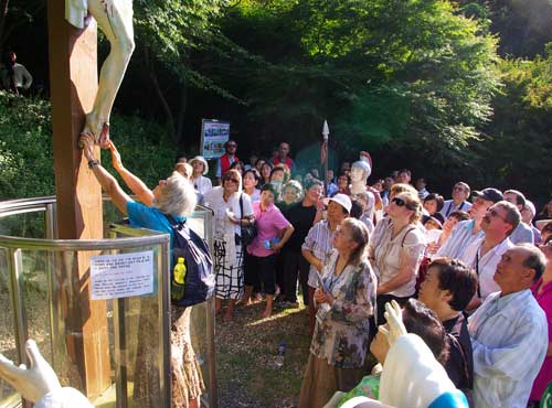 Das lebendige Gebet ist eine sehr wichtige Gebetspraxis des Alltags und Aufopferung zugleich, welche auf schnellstem Wege zur vollkommenen Tugend führen kann. Nach Beendigung des Kreuzwegs waren alle Pilger – auch aus Indonesien, Amerika, den Philippinen usw. - auf dem Kalvarienberg beisammen. Beim Berühren der Füße der Jesusstatue bewegte sich das schwere Kreuz wie Bambus im Wind hin und her, wodurch der Herr Seine Gegenwart kundtat. Die Pilger aus Deutschland, Österreich, der Schweiz und Polen, welche ein solches Phänomen noch nicht kannten, stießen Jubelschreie aus und bedankten sich dafür.