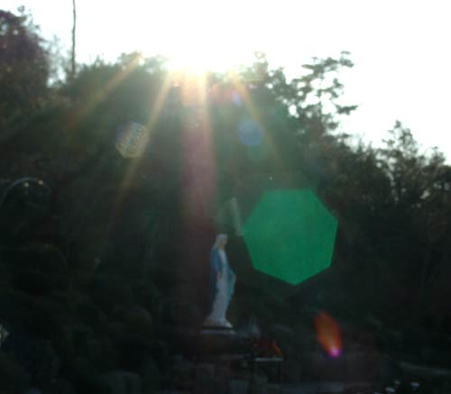 21. Oktober 2002 - Ein Pilger aus den U.S.A. machte Fotoaufnahme während der heilige Messe vor der Gnadenquelle. Dabei entstand dieses Foto mit dem Kerzenlicht